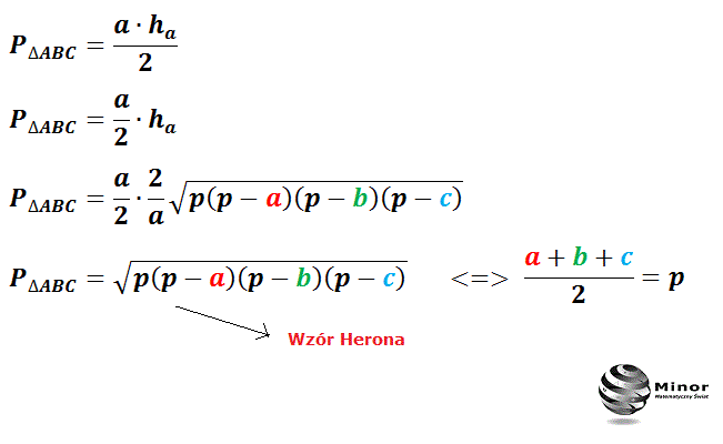 Podstawiając otrzymany wynik do wymienionego na początku wyrażenia, otrzymujemy wzór Herona.